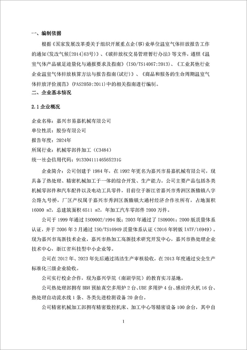 嘉兴市易嘉机械有限公司温室气体排放报告(2024年度)