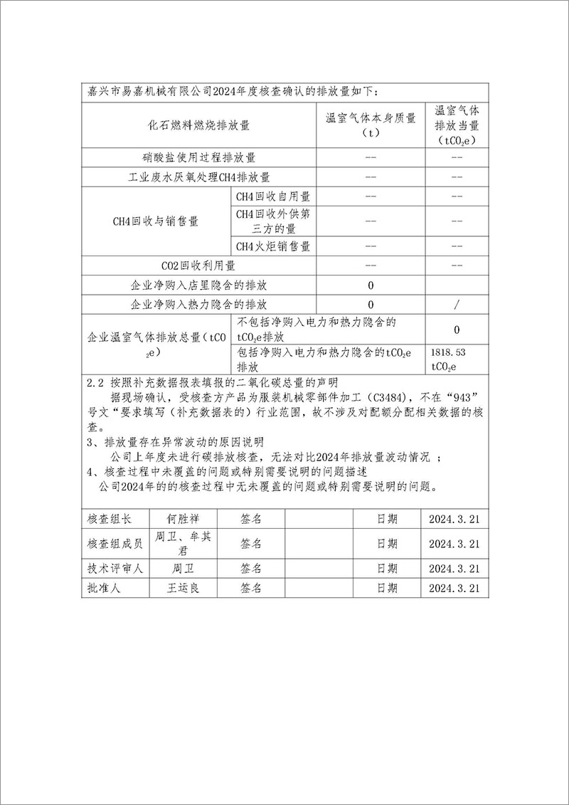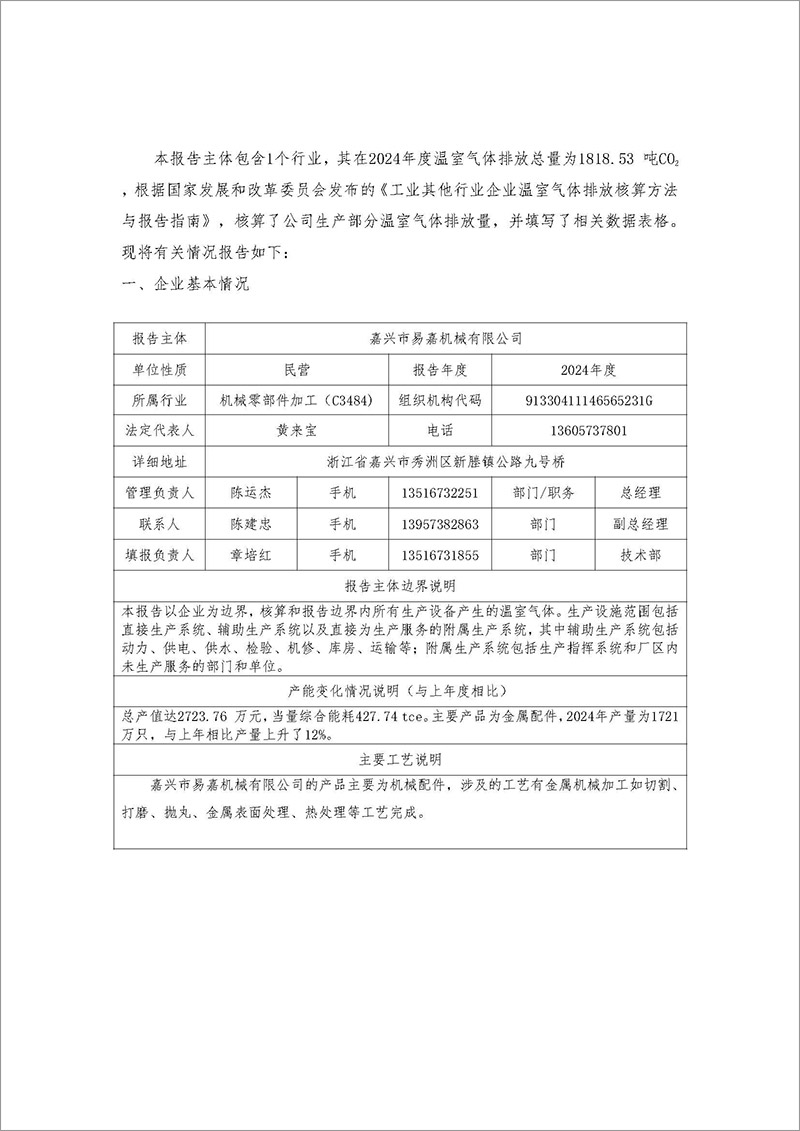 嘉兴市易嘉机械有限公司温室气体排放报告(2024年度)